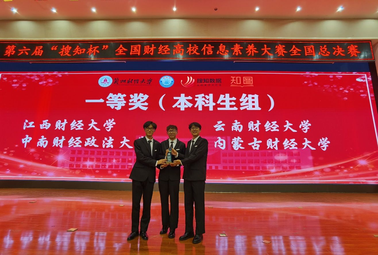 5月25-26日,第六届“搜知杯”全国财经高校信息素养大赛全国总决赛在兰州财经大学举行,全国38所财经高校共选派本科组38支代表队、研究生组21支代表队参加比赛。经过报告撰写及PPT制作、线上答题和展示汇报三个环节的比拼,我校信息学院师琦、财政与公共管理学院饶天城和苑帅三名同学组成的“滇锋队”获得全国总决赛本科生组一等奖;会计学院祖榕、杨慧敏和传媒与设计艺术学院庞坚三名同学组成的 “向云端队”获得全国总决赛研究生组优秀奖。同时,学校获组织奖,图书馆李娜、刘楠两名教师分别获得本科生组最佳指导教师奖和研究生组优秀教师指导奖,刘楠老师同时获得教师组信息素养微课大赛优秀奖。