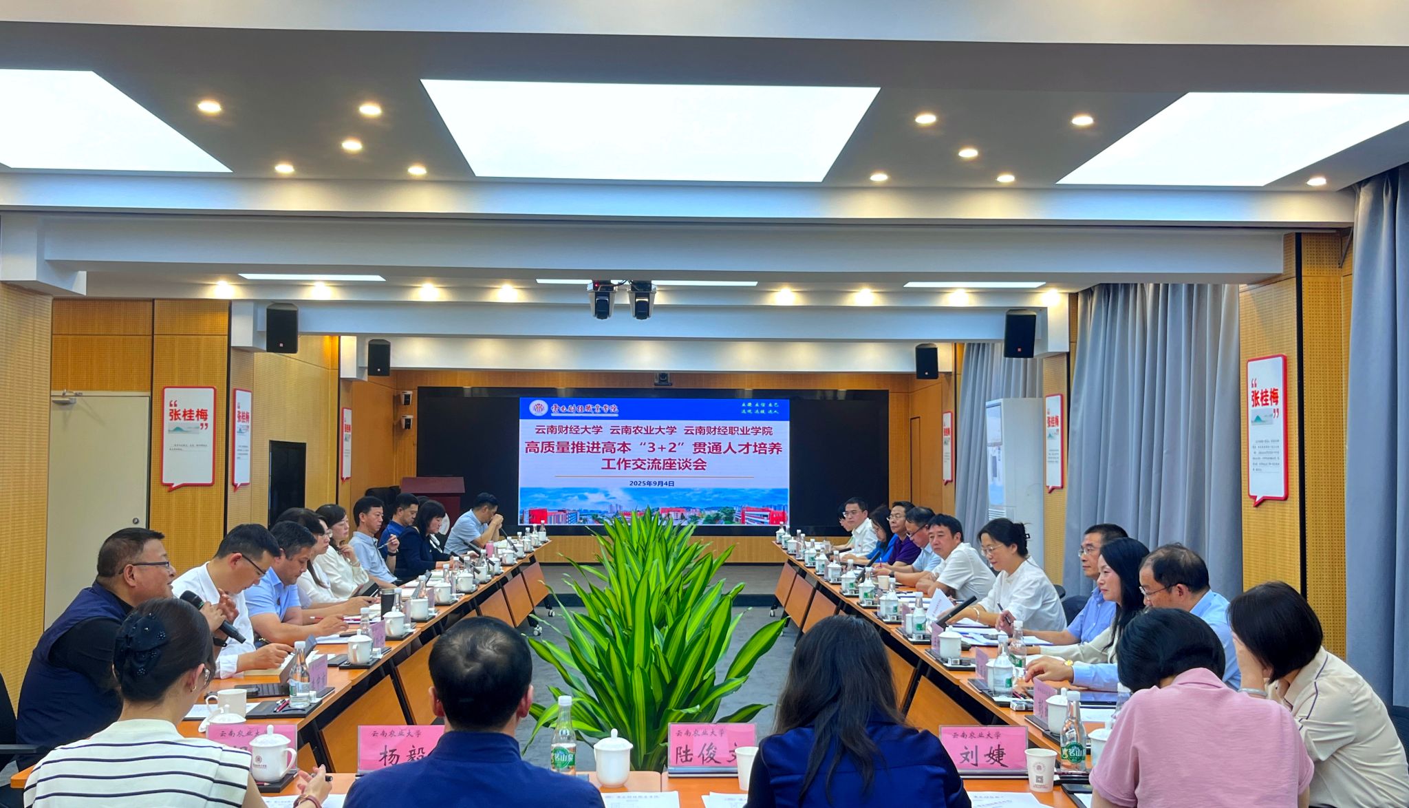 9月4日上午,由云南财经大学和云南农业大学、云南财经职业学院联合召开的“高质量推进高本3+2贯通人才培养工作会”在云南财经职业学院龙泉路校区举行。我校党委委员、副校长颜明率队参加,云南农业大学、云南财经职业学院的校领导和相关部门负责人参加会议。