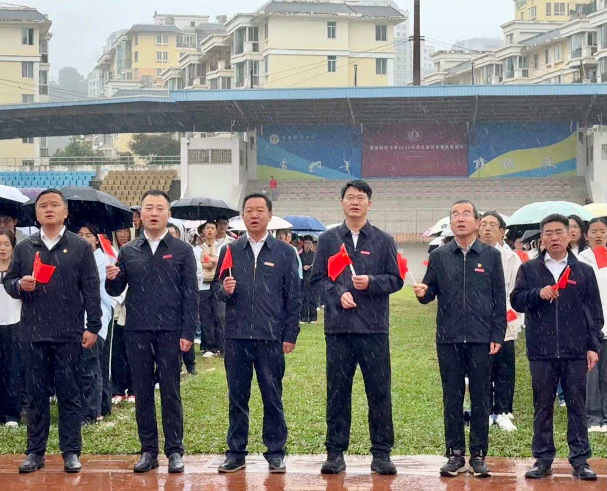 10月1日清晨,云南财经大学国庆升旗仪式在龙泉路校区南院田径场庄严举行。学校领导、校属各单位教职员工代表和900余名学生代表齐聚雨中,共同参与这场意义非凡的爱国主义教育课堂。