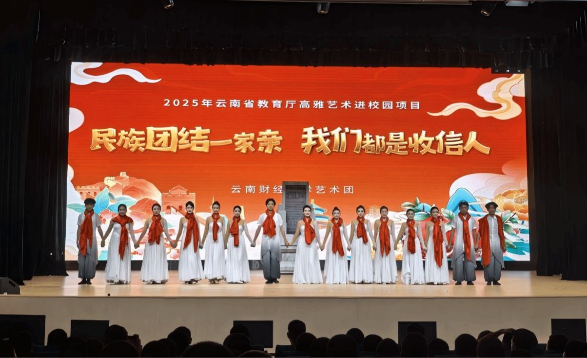 近日,我校入选2025年云南省高雅艺术进校园活动的优秀剧目《民族团结一家亲 我们都是收信人》,在云南警官学院拉开巡演帷幕,这也是该剧目本年度5场巡演的首场演出。