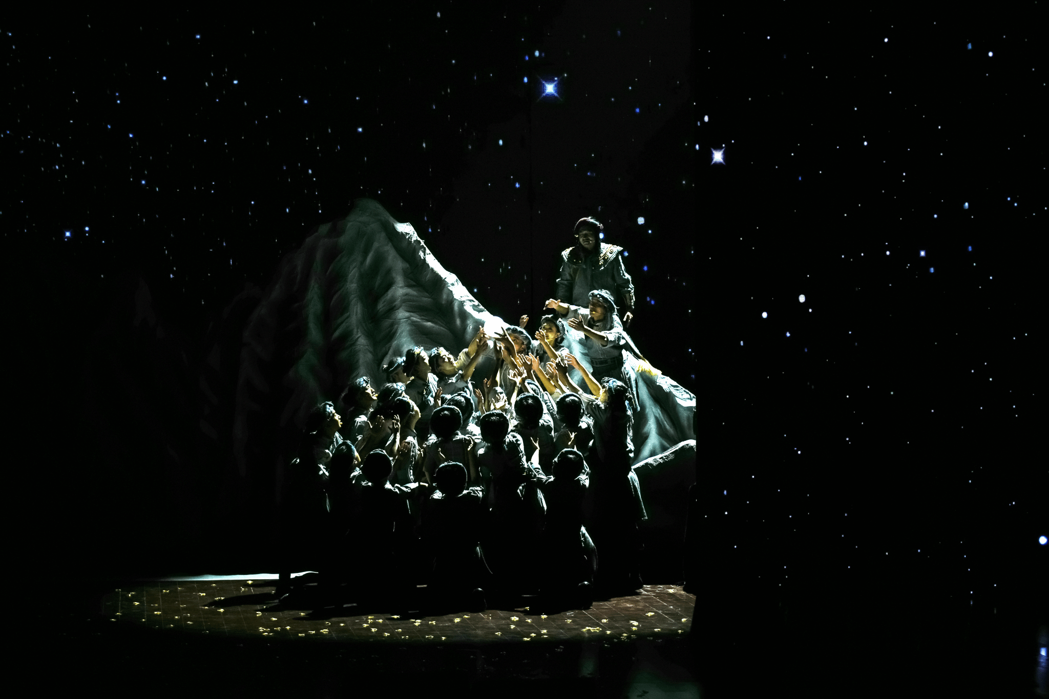 今年9月,《千年回响》获云南省第十八届新剧(节)目展演优秀剧目奖。舞剧以救赎、牺牲、宽恕与新生为故事主线,深刻揭示“真正的香巴拉净土,不在遥远的画卷里,而在人心相连、万物共生的和谐回响之中”的核心主旨。全剧始终紧扣铸牢中华民族共同体意识,用歌舞艺术将“人类命运共同体”与“天人合一”的哲学内涵娓娓道来。