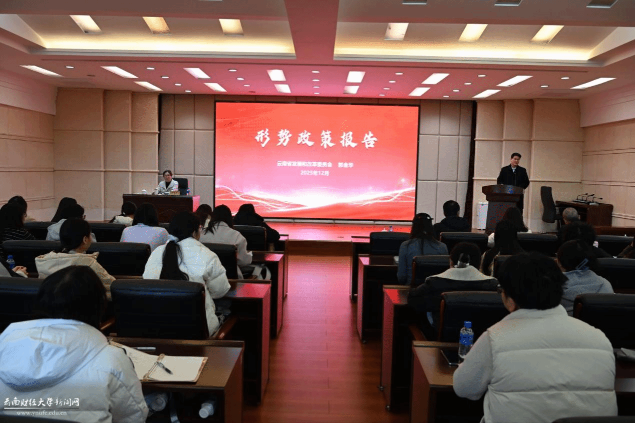 12月12日上午,云南省发展和改革委员会党组成员、副主任郭金华应邀为我校师生作形势政策专题报告。报告会由校党委委员、副校长李正彪主持。