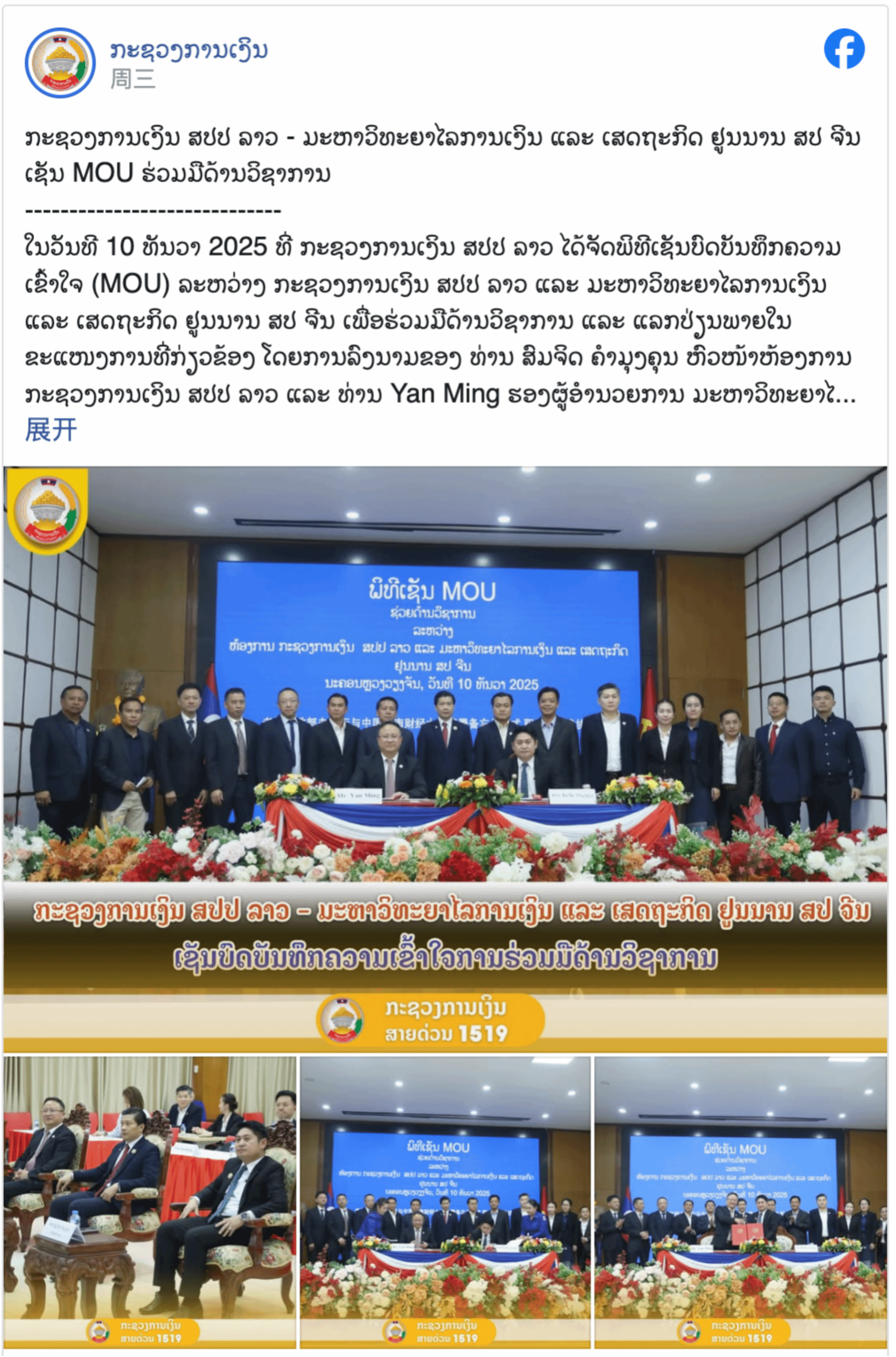 根据备忘录内容,我校将为老挝财政部提供多方面支持,包括协助建立健全会计审计准则与制度、建设老挝会计职业资格考试体系、编制财经类专业培训教材,并开展青年干部专业与学历教育。双方还计划在万象共建“云南财经大学老挝商学院”,为老挝财经干部提供在地培训与政策咨询服务。