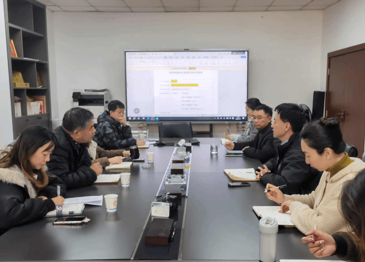 为高质量推进2026年援外培训项目申报与实施,1月9日,海外学院与云南国际经济技术交流中心举行业务工作推进会。交流中心主任李荣康、副主任魏娜,海外学院院长潘雪冬及双方相关项目负责人参加会议。