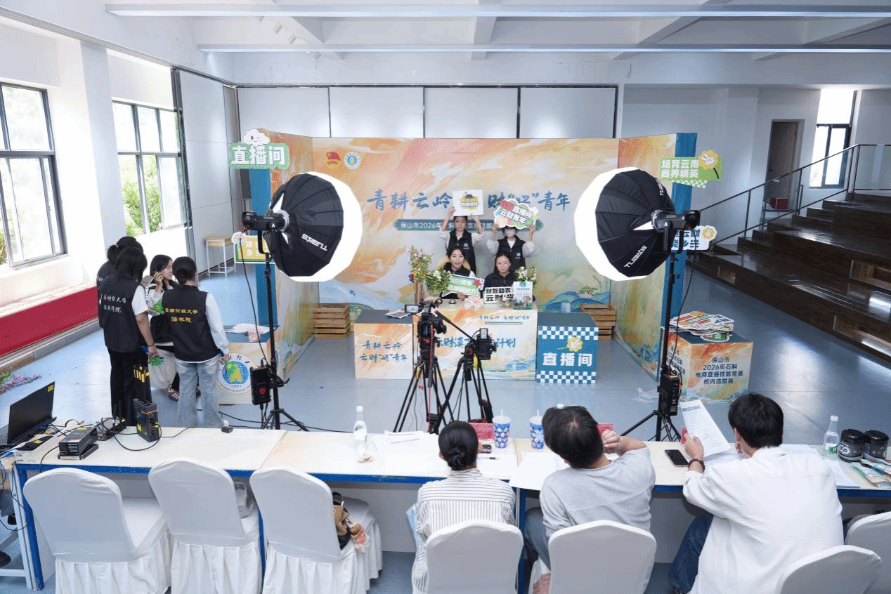 本次大赛由学校与保山市2026年石斛电商直播技能竞赛联合举办,共吸引校内1000余名师生组成137支团队参与。师生们发挥专业优势,助力保山、怒江等地的农户销售高原特色农产品。