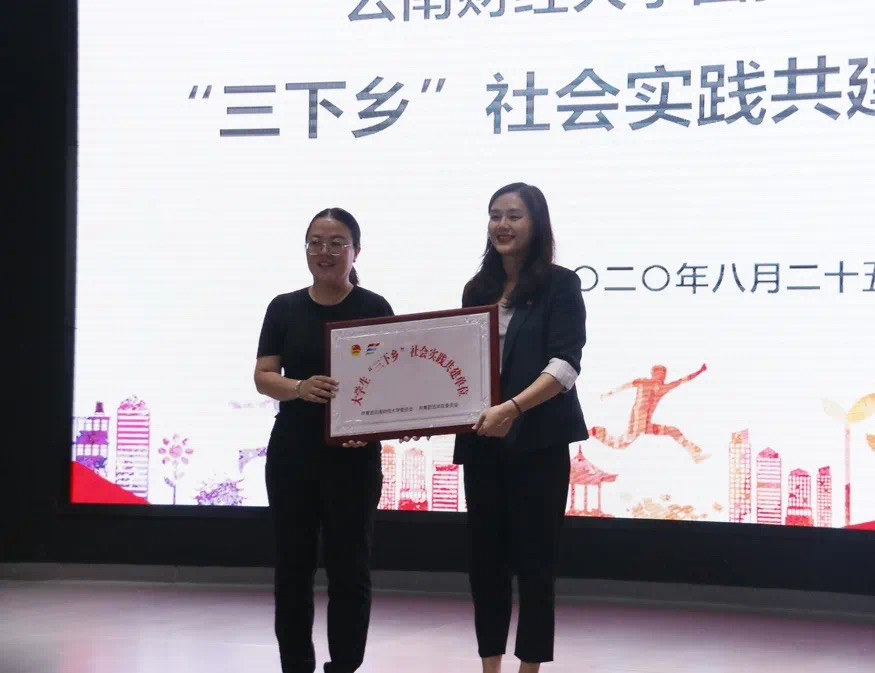 出征仪式上,张媛与曾蕾共同为云南财经大学团委与五华区团委“三下乡”社会实践共建基地揭牌。张媛表示,欢迎云财学子到五华区的企业、社区以及榜样人物身边进行实践学习,这是地方资源与高校人才优势的结合,能进一步推动青年人才队伍的建设,为地方基层政府的治理注入新鲜血液。