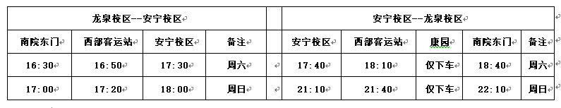 星期六、星期日教师交通车时刻表(2023年9月4日-9月17日)