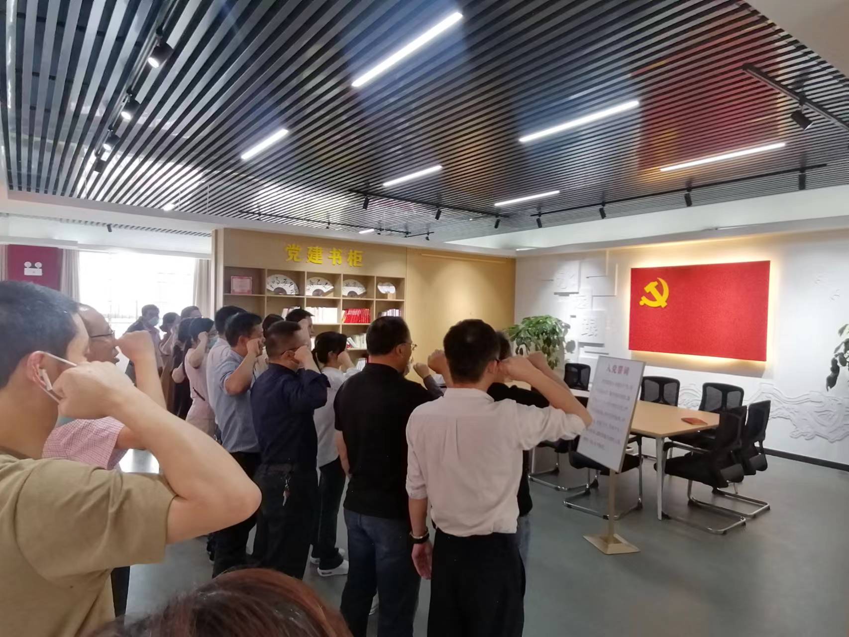 参观人员签字报到后在序厅合影,职能部门党委书记朱恒祥介绍了活动目的内容,强调纪律要求。第六党支部组织委员、纪检处副处长崔海浪为参观人员进行现场讲解。同志们依次参观了序厅、引领篇、崇廉篇、榜样篇和使命篇五个展厅,学习了习近平总书记全面从严治党的重要论述,学习了党章党规党纪,观看了“问剑破局”教育片,引发了同志们对作风问题的深入思考。