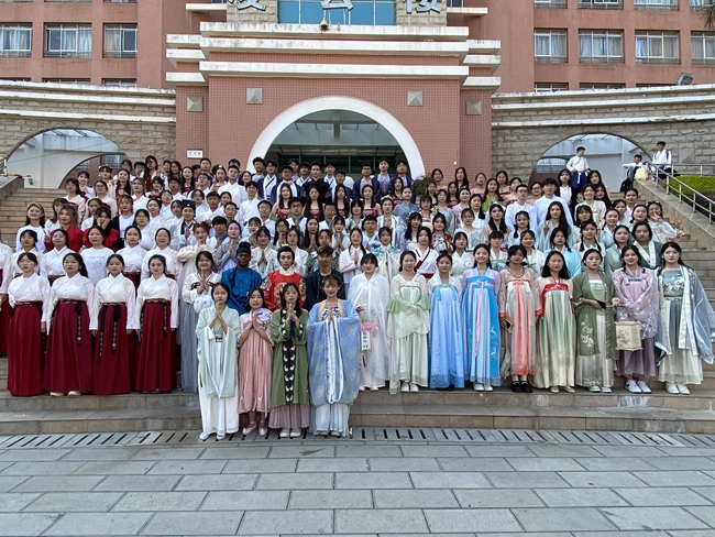 通过此次中国文化英语展示的活动,同学们身着传统服饰,用另一种语言感受中国诗文之美。外教和留学生身着汉服参与活动,与中国学生一起领略中国文化,是语言学习的独特体验。国际语言文化学院集中了我校所有语言类专业,师生肩负着中国文化对外传播的历史使命,本次活动是国际语言文化学院Rouhe老师组织的中国文化英语展示的系列活动之一,旨在贯彻“讲好中国故事、传播好中国声音,展现可信、可爱、可敬的中国形象,推动中华文化更好走向世界。”