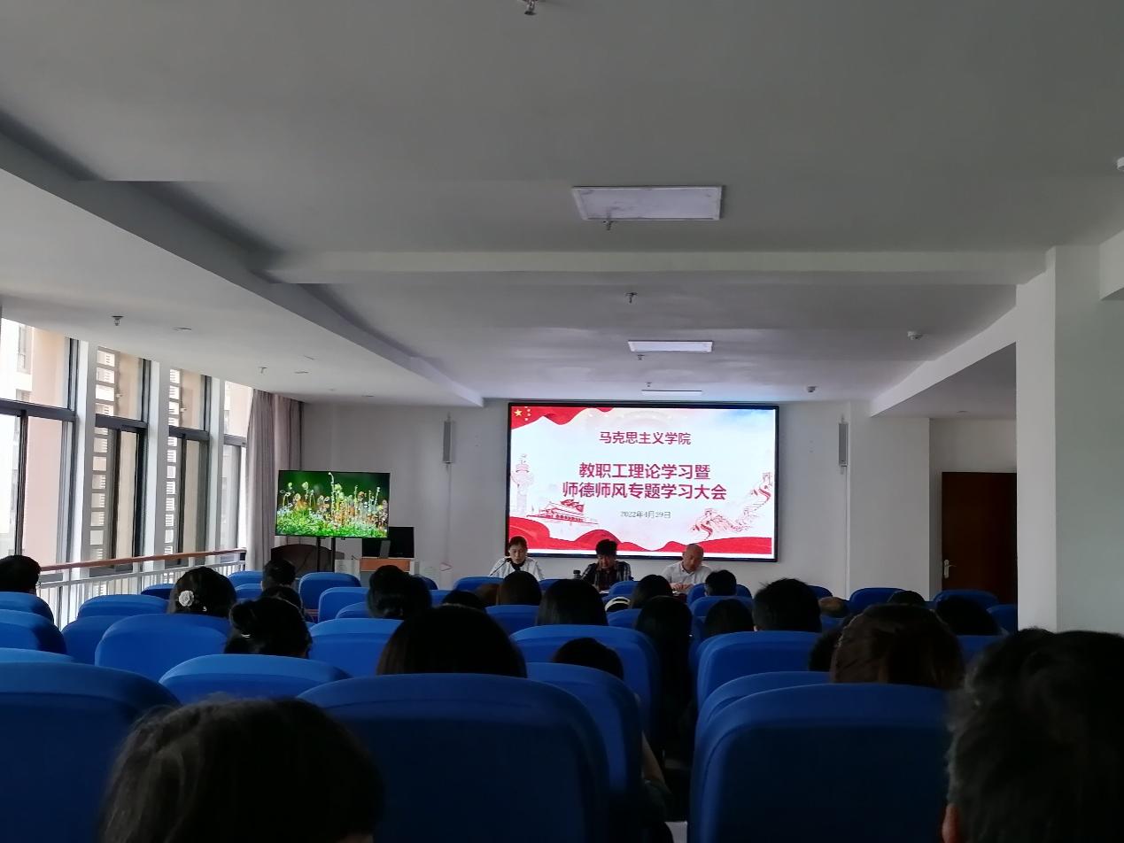 4月29日下午,马克思主义学院在英华苑416多功能报告厅以“师德师风”相关内容为主题开展教职工理论学习,学院全体教职工参加。