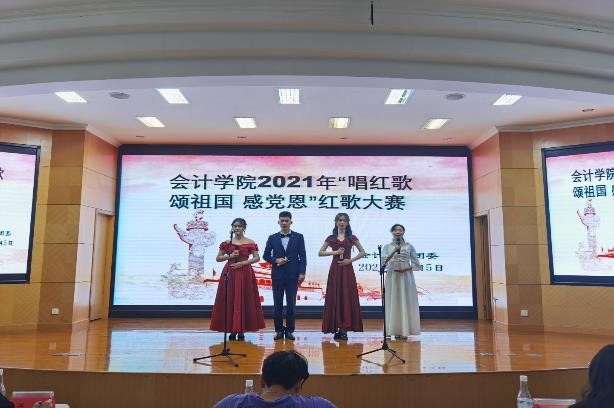 在中国共产党成立100周年之际,为弘扬爱国精神,增强班级凝聚力,丰富校园文化生活,11月5日,会计学院在国工报告厅举办“唱红歌 颂祖国 感恩党”红歌合唱比赛。