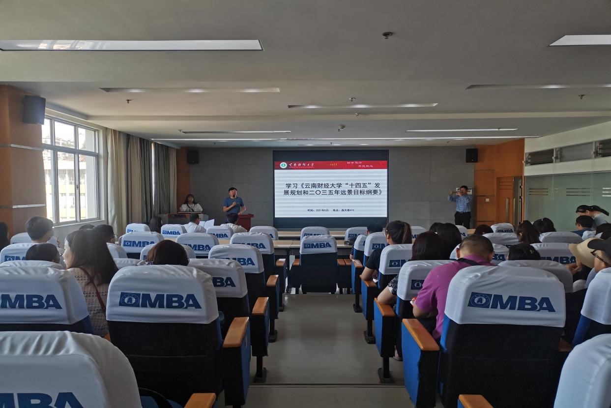 5月14日上午10:00,商学院在南院逸夫楼410开展教职工理论学习,学习研讨“2021年全国教育工作会议精神”、《云南财经大学“十四五”发展规划和二〇三五年远景目标纲要》、习近平:《论中国共产党历史》。理论学习由学院党委书记王敏主持,党委委员江东书领学,全体教职工参加。