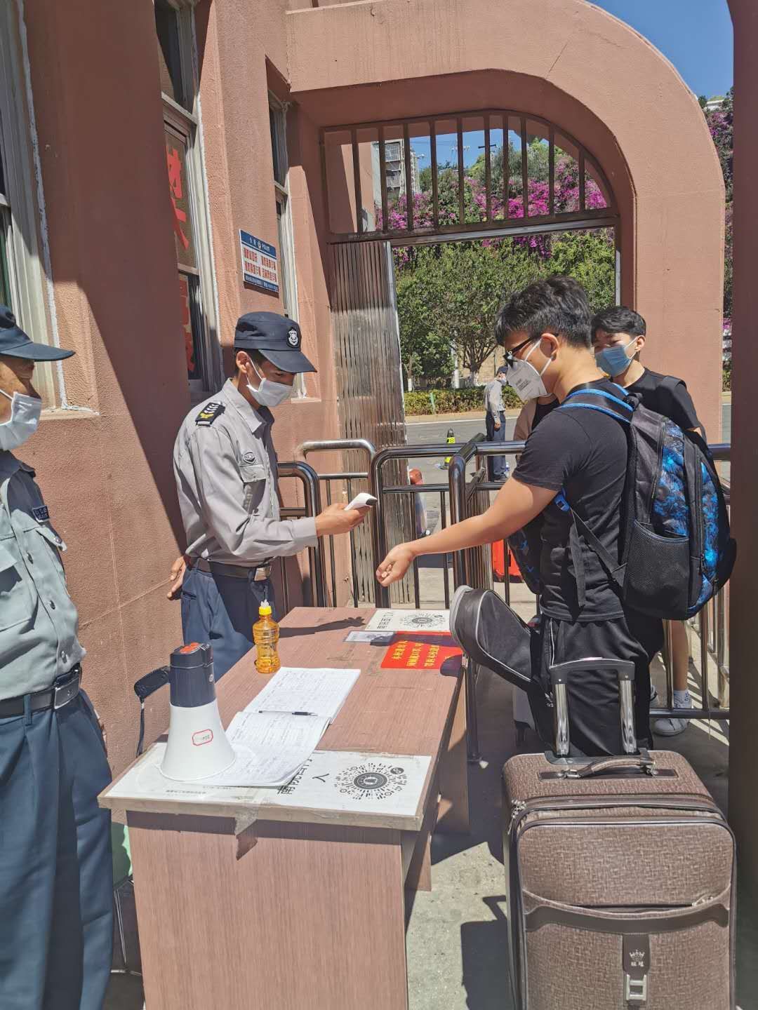 演练内容包括学生报到通道设置、秩序维护、外来人员强行入校处置、交通拥堵疏导指挥、扫码异常及体温异常等突发事件应急处置等科目。通过演练,让全体安保人员一方面检验学生返校安全保卫工作操作方案的可行性,另一方面熟悉返校接待的操作流程,同时对校内发生的突发事件、反恐防暴事件的处理上有了更清晰的认识。