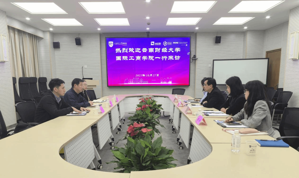 在上海理工大学管理学院调研期间,副院长刘魏巍详细介绍了该院AACSB认证经验和EQUIS认证进展。国际认证主管聂蕤分享了认证材料准备、团队组建等实操经验,强调"数据真实、逻辑清晰、战略聚焦"的核心原则。尹豪副院长也介绍了我校发展历程和学院国际化建设情况,并就认证相关问题进行了深入交流。