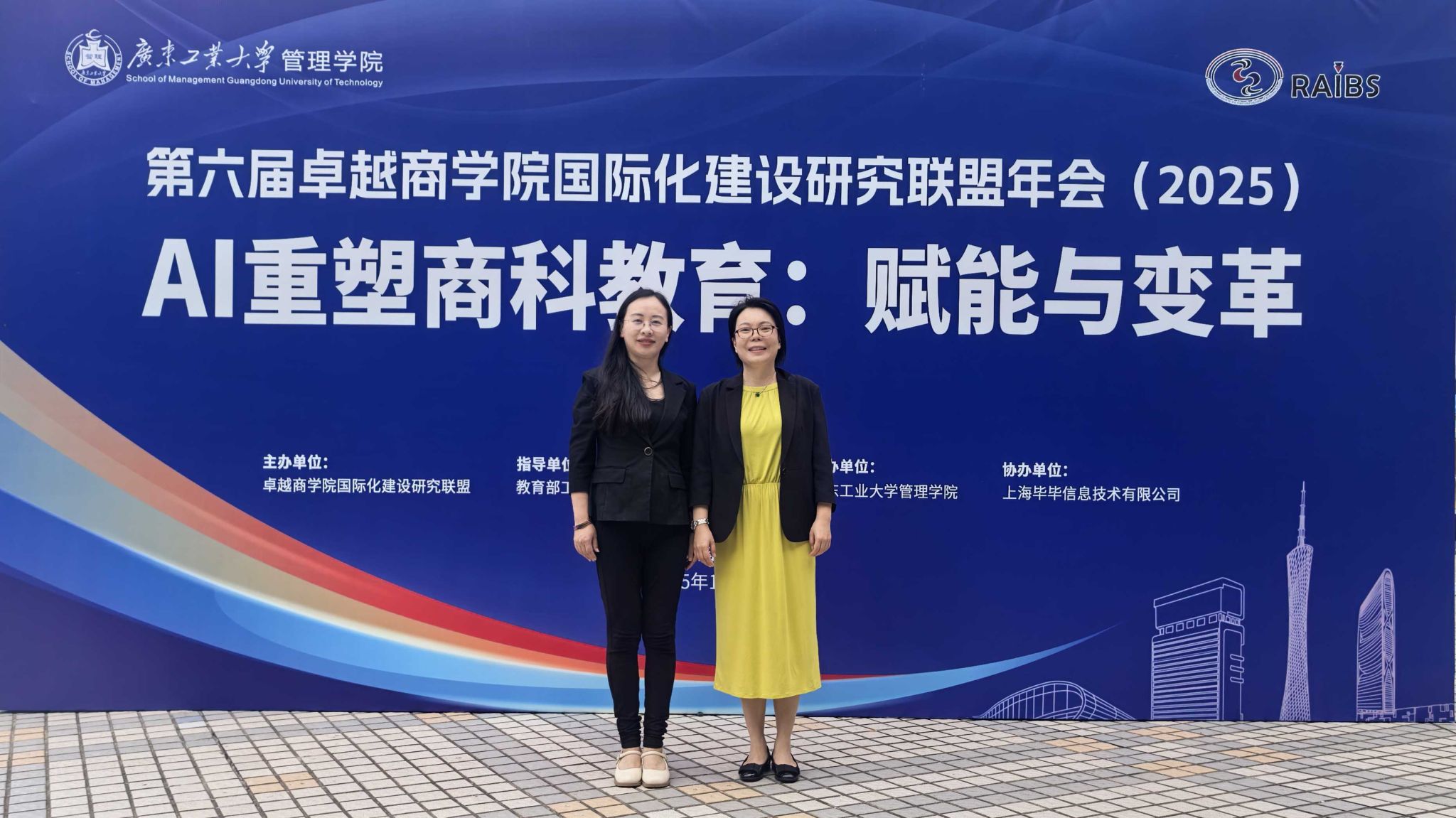 2025年11月7日至9日,以“AI重塑商科教育:赋能与变革”为主题的第六届卓越商学院国际化建设研究联盟年会”在广东工业大学管理学院举办。本届年会汇聚了全国众多教育专家、商学院院长及骨干教师,我校国际工商学院副院长张俊婕与EQUIS认证专班教师彭程参加会议。
