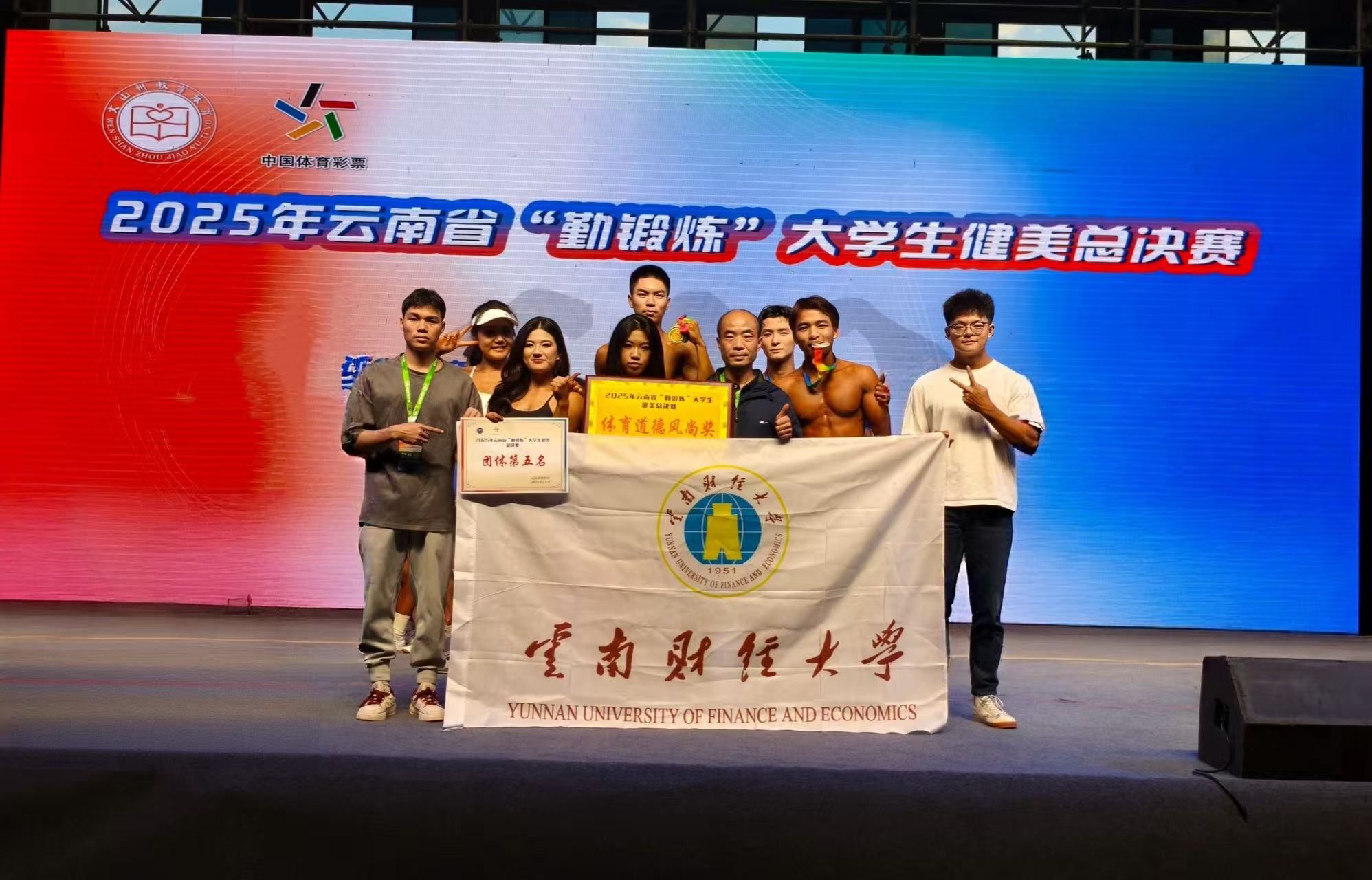 由云南省教育厅主办的2025年云南省“勤锻炼”大学生健美总决赛于11月15日在文山州民族体育馆举办,我校代表队获一金二银一铜、团体第五名及体育道德风尚奖。