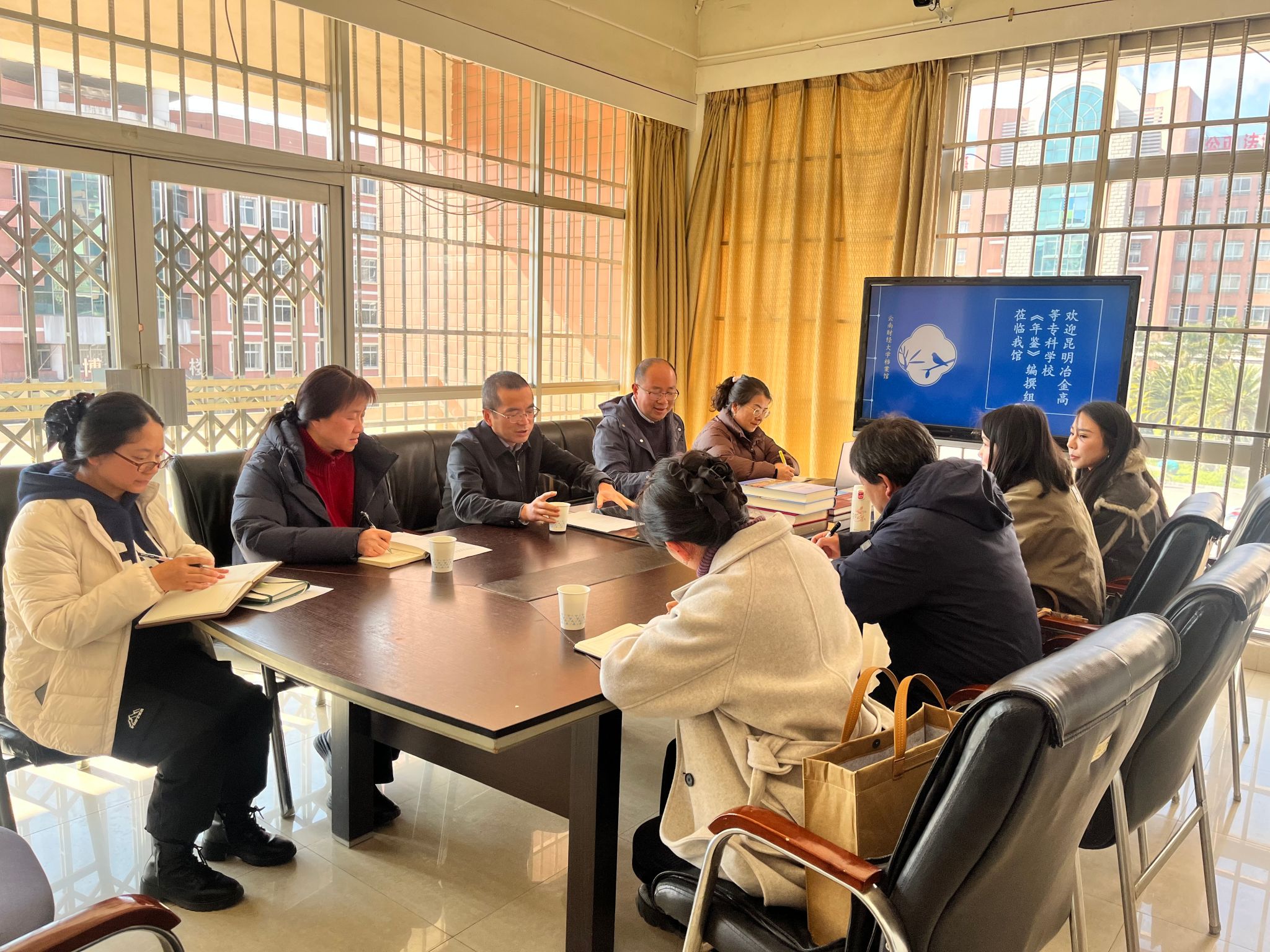 1月9日下午,昆明冶金高等专科学校档案馆、办公室(党委巡察办)、宣传部一行到访我校,与我校党委委员、宣传部部长寸丽锋,档案馆馆长吴红刚及相关人员进行工作交流。
