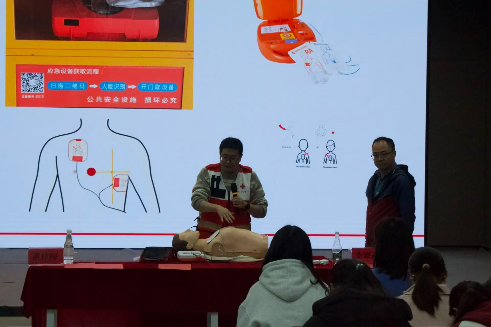盘龙区红十字会副会长宋文喜,红十字应急救护培训中心副主任孔德治,昆明血液中心宣传招募科副科长保见坤,盘龙区红十字会工作人员董桂梅、曹晓佳受邀参加活动。保见坤和孔德治分别围绕无偿献血知识和心肺复苏、创伤包扎等急救技能展开讲解,董桂梅围绕造血干细胞捐献、人体器官及组织捐献等方面进行宣讲。